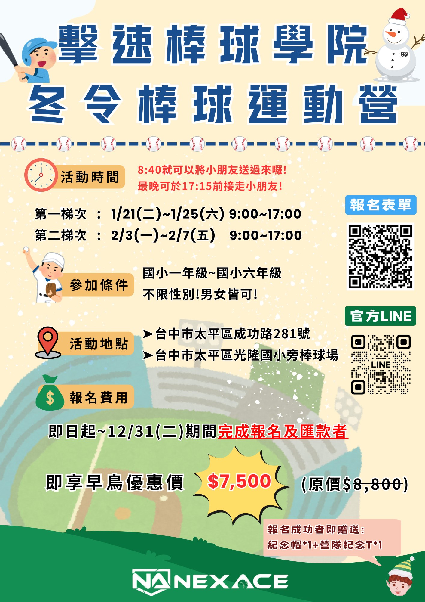時間:115/2-2-2/6 地點:台中太平擊速棒球學院