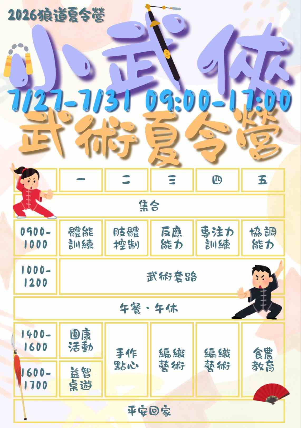 [臺南新市]2026狼道多功能武術運動中心夏令營|武術、體操 、跑酷