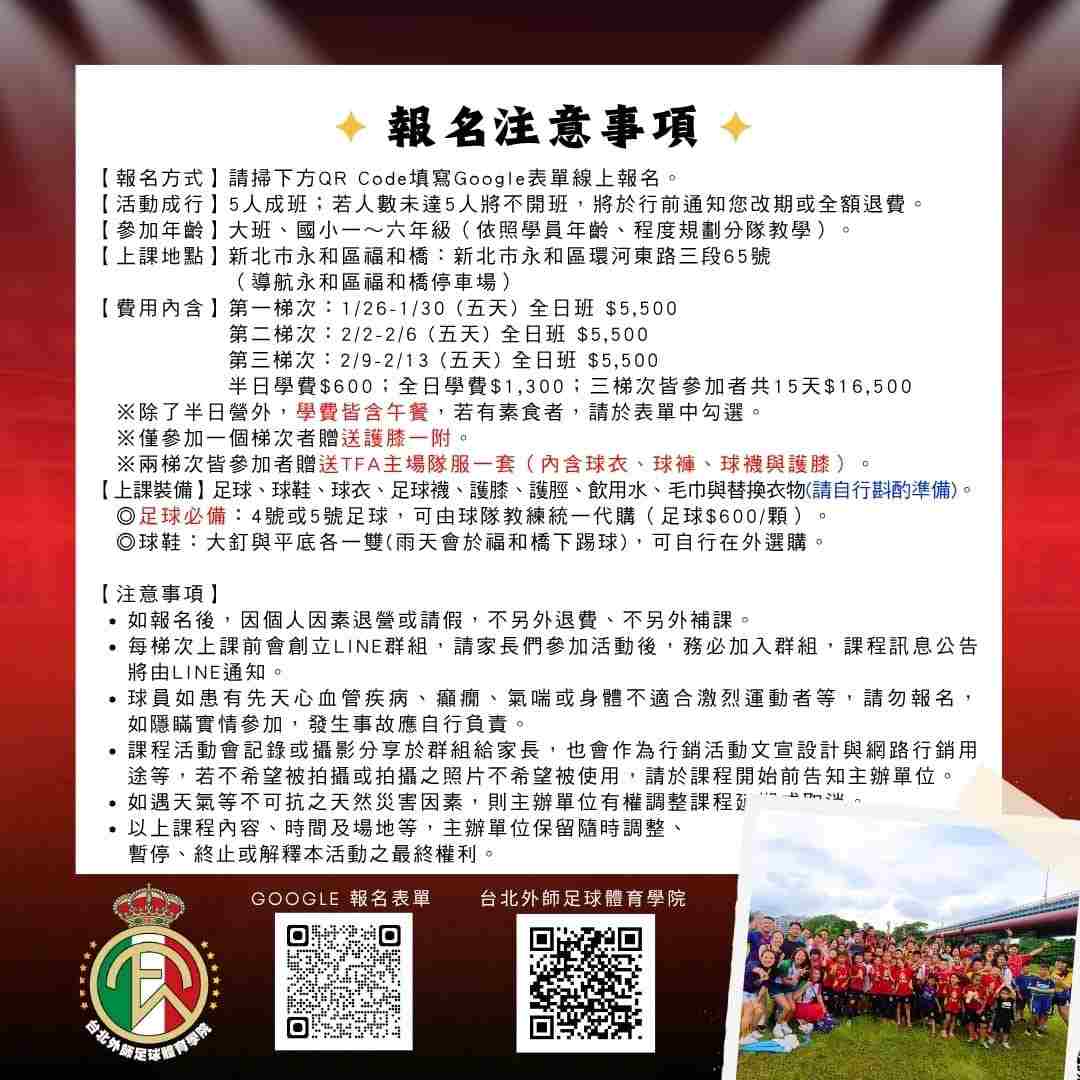 [新北永和]2026TFA外師足球雙語冬令營
